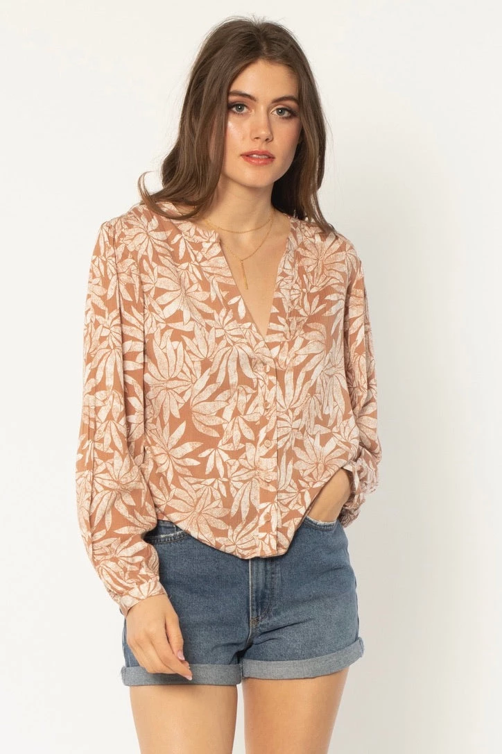 Amuse Society La Rambla Long Sleeve Top in Cava | Stylish Women’s Casual Top
