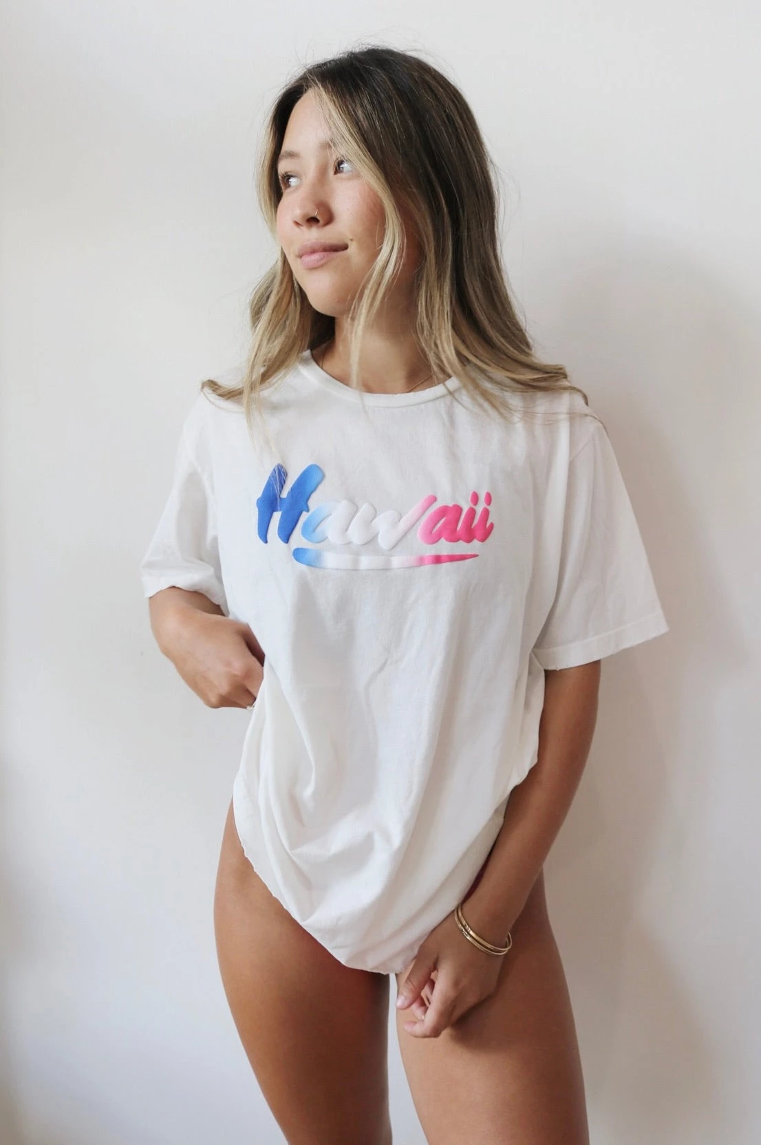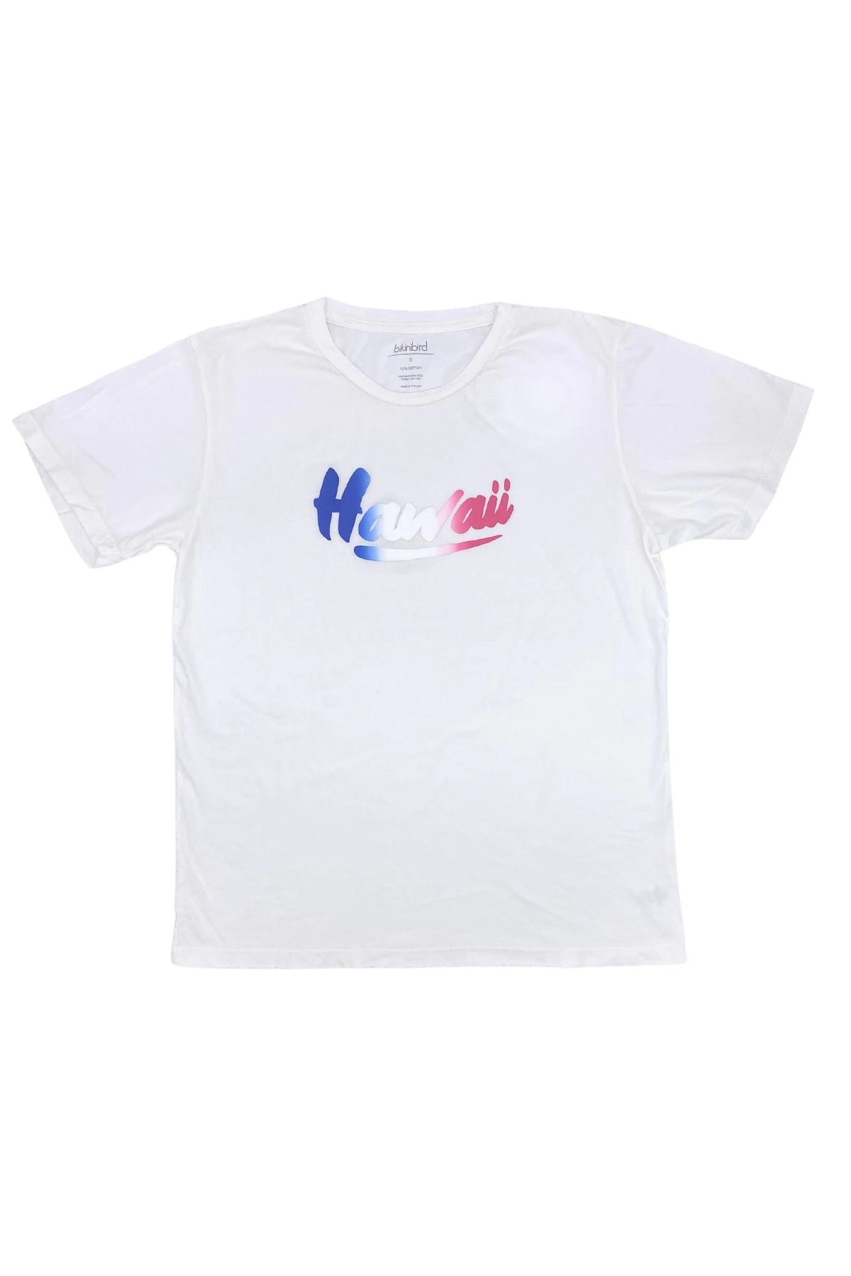 - Elevate your casual wardrobe with the BikiniBird Exclusives Hawaii Gradient Tee in White. This premium-quality top combines style and comfort effortlessly.
