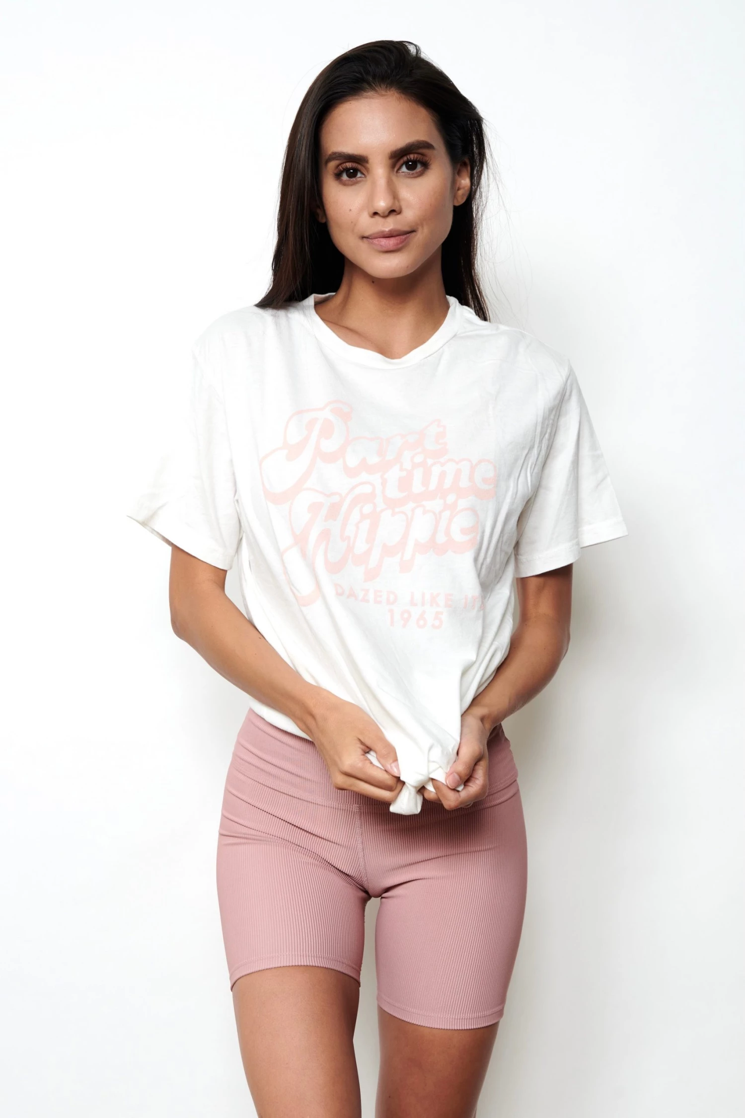 BikiniBird Part Time Hippie Tee – White/Pink Graphic Tee | BikiniBird Exclusives