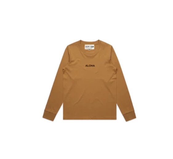 Billy Aloha Aloha Mini Aloha Long Sleeve Tee in Camel – Stylish & Comfortable Tops