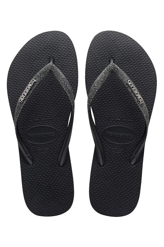 - Elevate your style with the Havaianas Women’s Slim Glitter Sandals in Black/Dark Grey. These chic flip-flops combine fashion and comfort effortlessly.