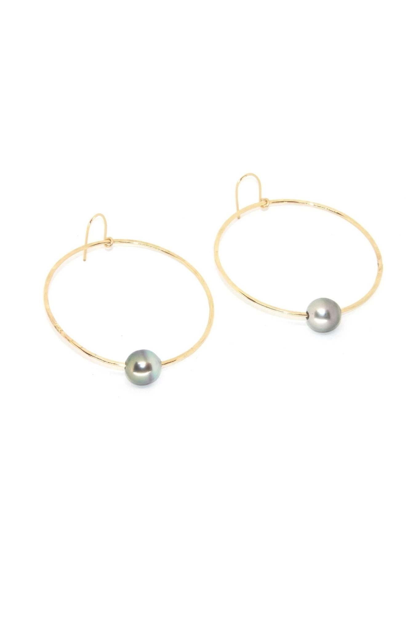 - Elevate your style with the Honi Hoops Tahitian Pearl Medium Hoops in Gold. These exquisite earrings feature genuine Tahitian pearls set in a luxurious gold finish, making them a timeless addition to your jewelry collection.