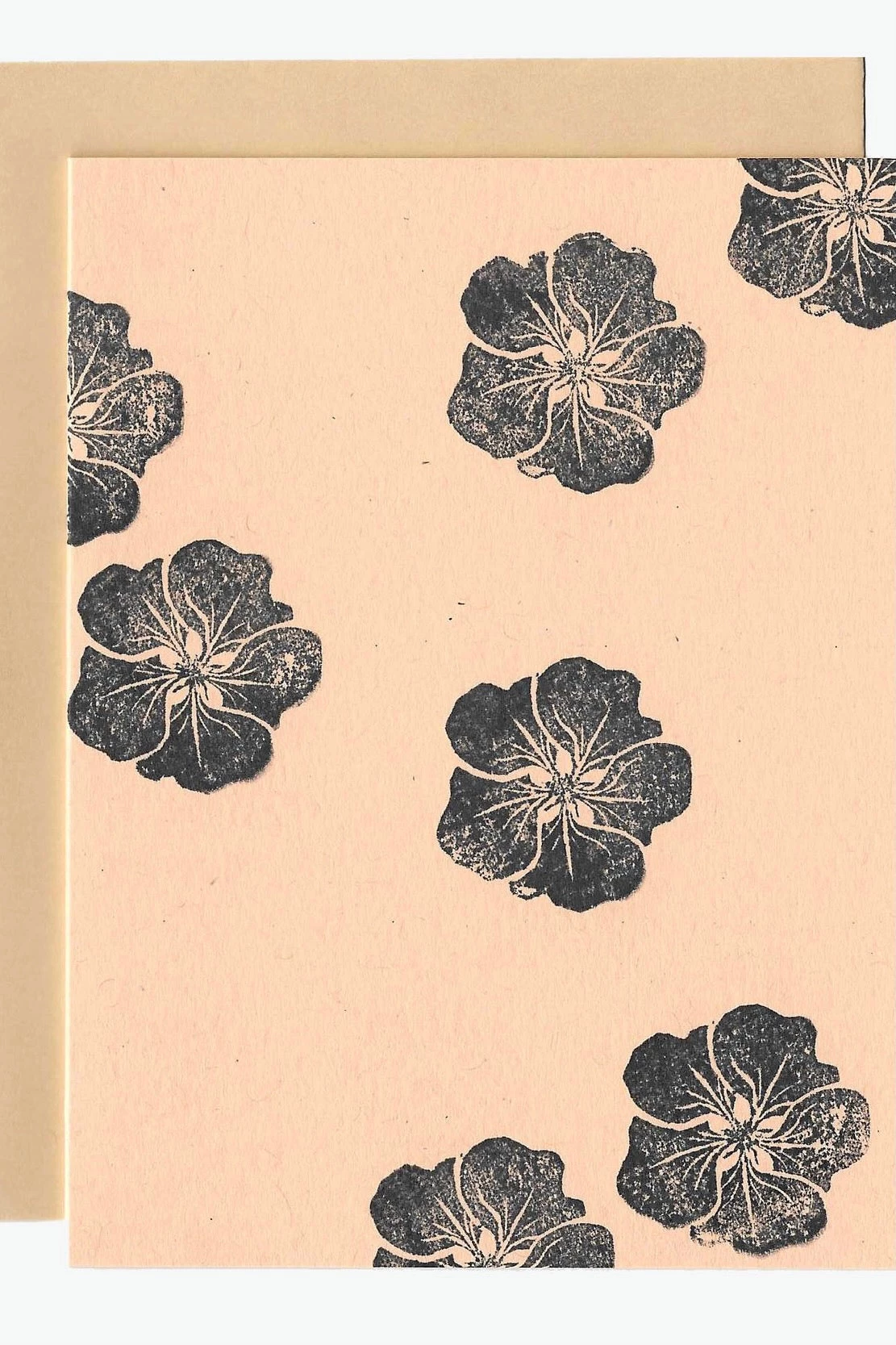 set of (5) blank size A2 folding cards + envelopes packed in a clear plastic sleeve. each unique card is printed by hand in honolulu, hawaii.