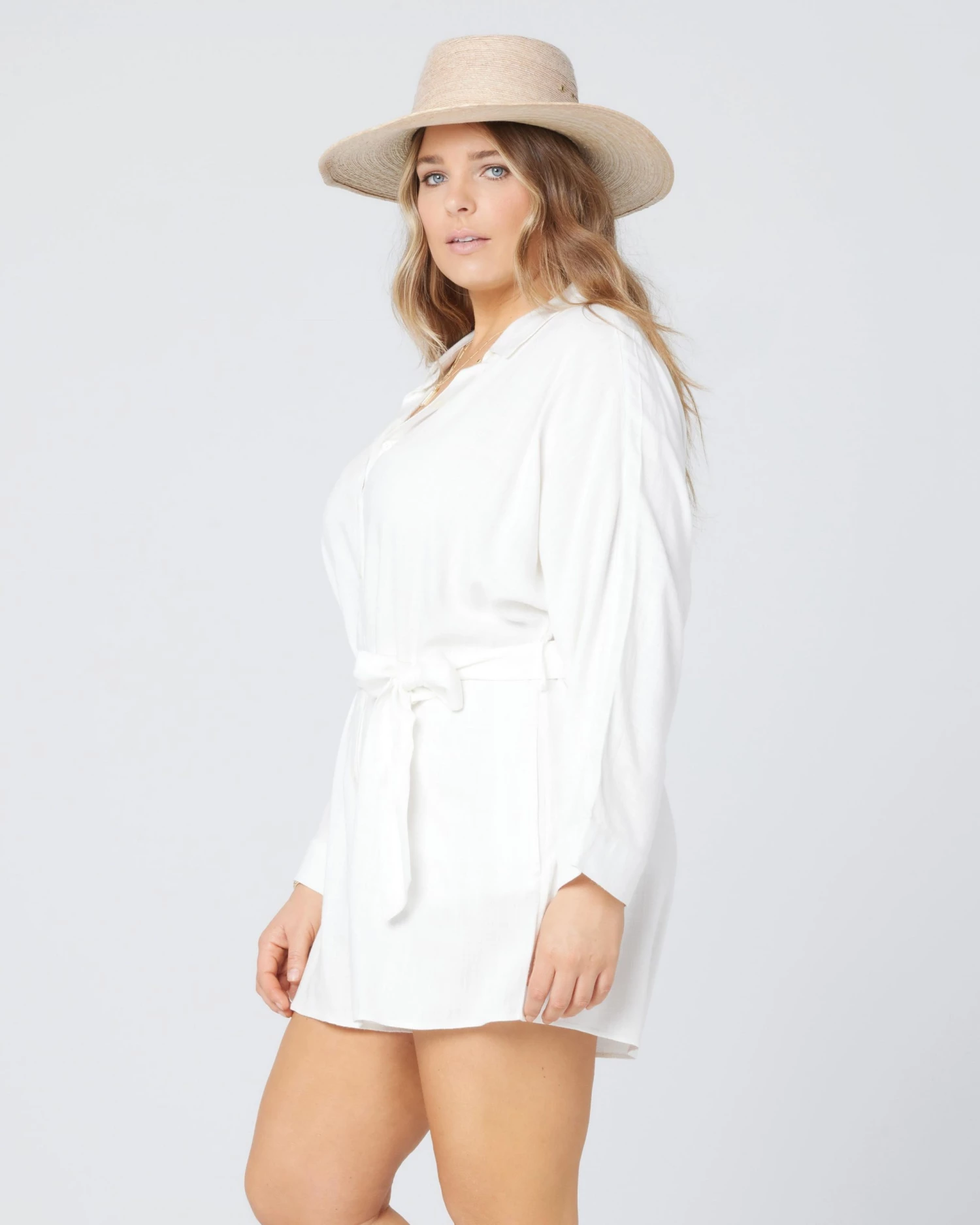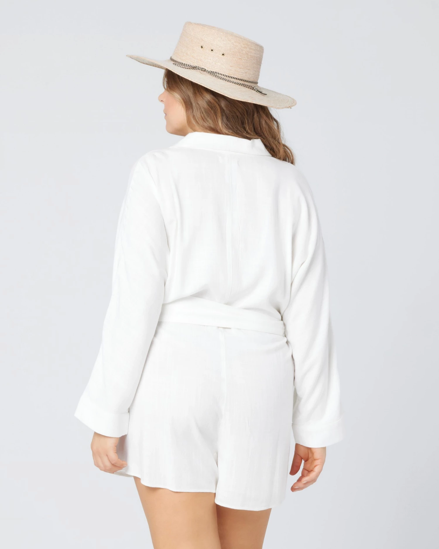 Give your wardrobe a comfy one-and-done update with the Coronado Romper. This warm-weather essential features a relaxed fit with front button closures, a self-tie waist, and 3/4 sleeves.