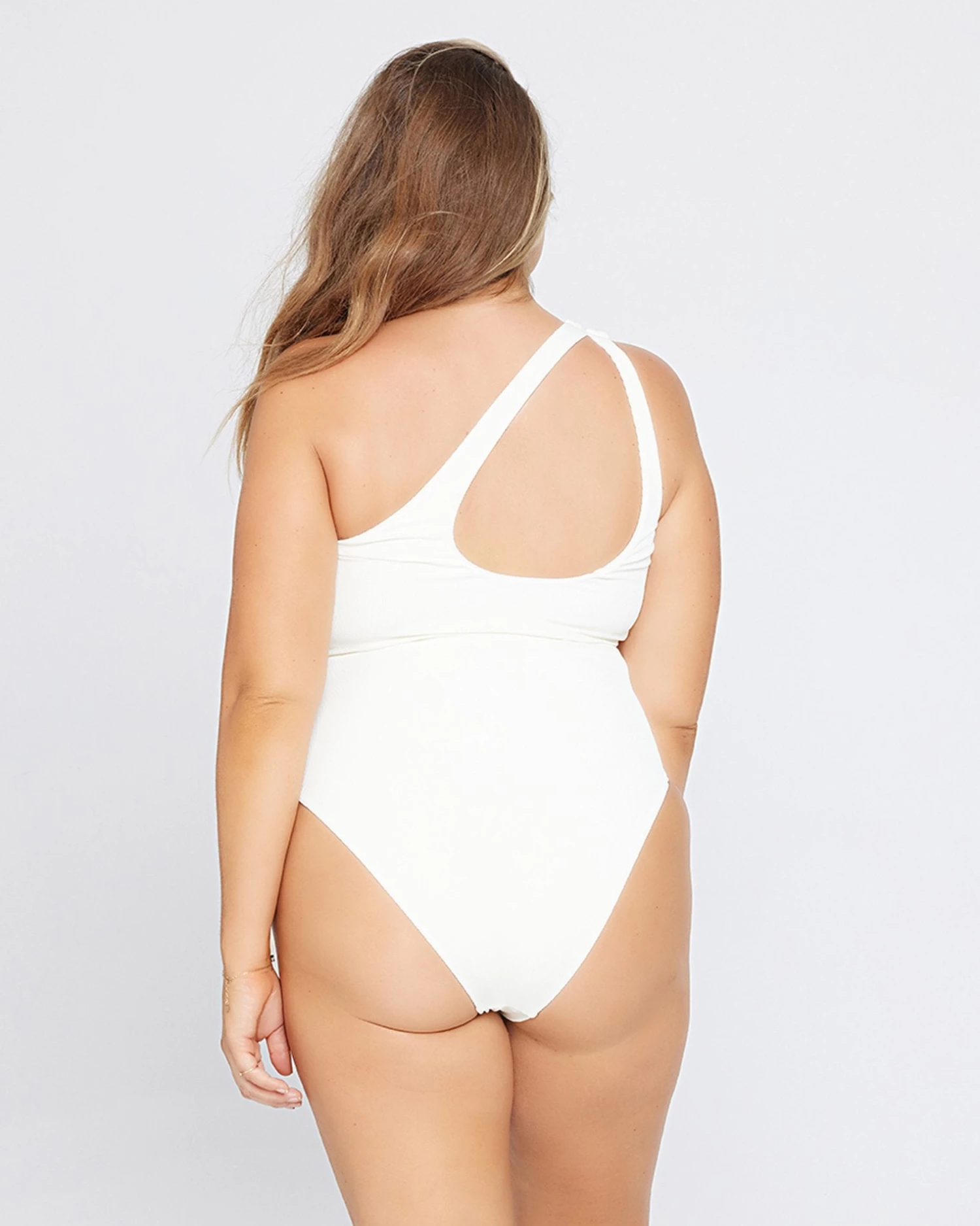 Modern and eye-catching, the Phoebe One Piece features a unique one shoulder strap and front cut out detail. Constructed from super soft ribbed fabric with a shelf bra for extra support, it looks just as good with denim as it does poolside.