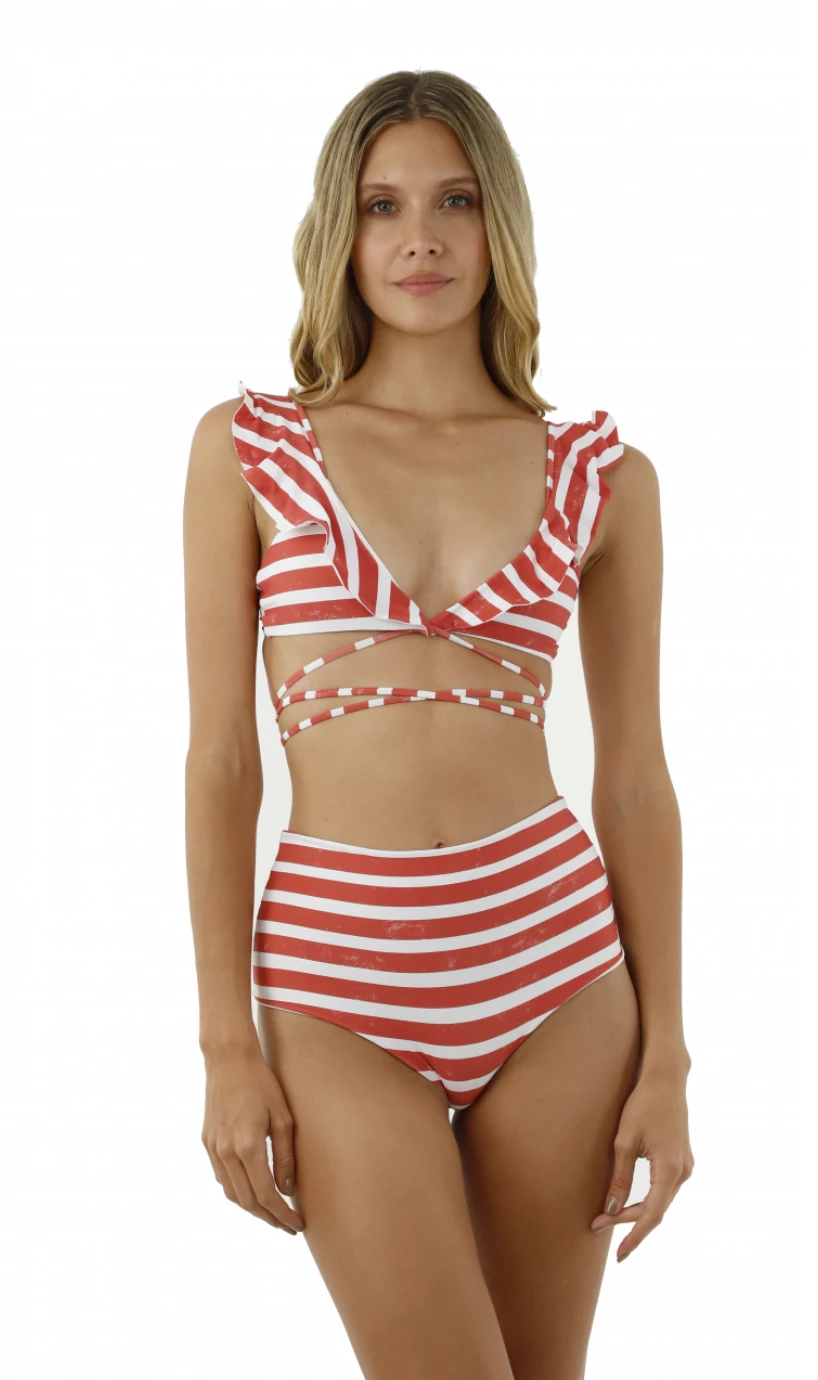 - Elevate your swimwear collection with the Malai Swimwear Evertes Bottom in Red Sail. Designed for comfort and style, these high-waisted swim bottoms are perfect for any beach or pool day.
