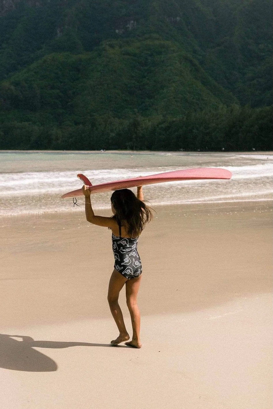 - Featuring a sleek black design with the iconic Shaka print, this one-piece swimsuit is perfect for beach days, pool parties, or any water activity. It combines style and functionality effortlessly.