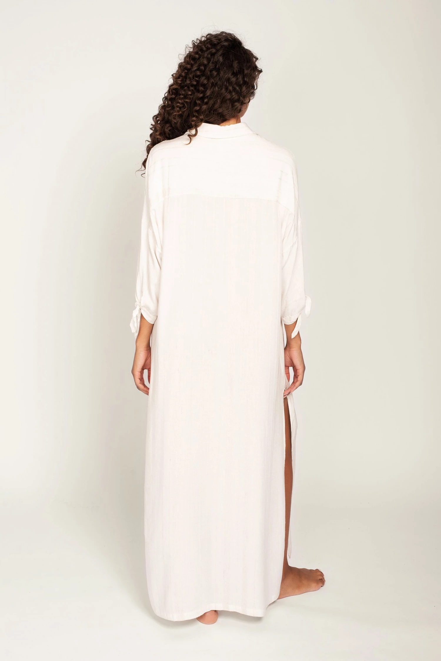 - Crafted from high-quality canvas stripe fabric, this cover-up offers a comfortable fit and a timeless design. The loose, flowy silhouette ensures ease of movement and breathability.